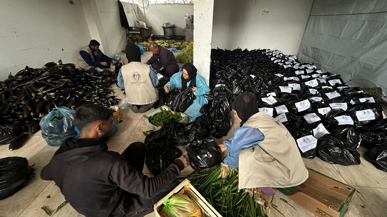 • توزع وجبات مفتول على النازحين في قطاع غزة